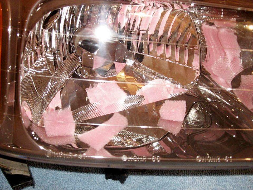 Кубики поролона внутри фары