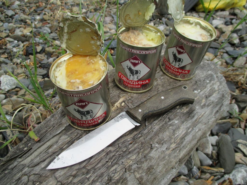 Если с собой нет консервного ножа, можно воспользоваться обычным или перочинным