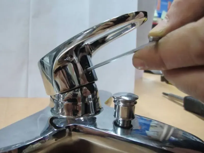 Откручиваем фиксатор, чтобы снять со смесителя ручку.