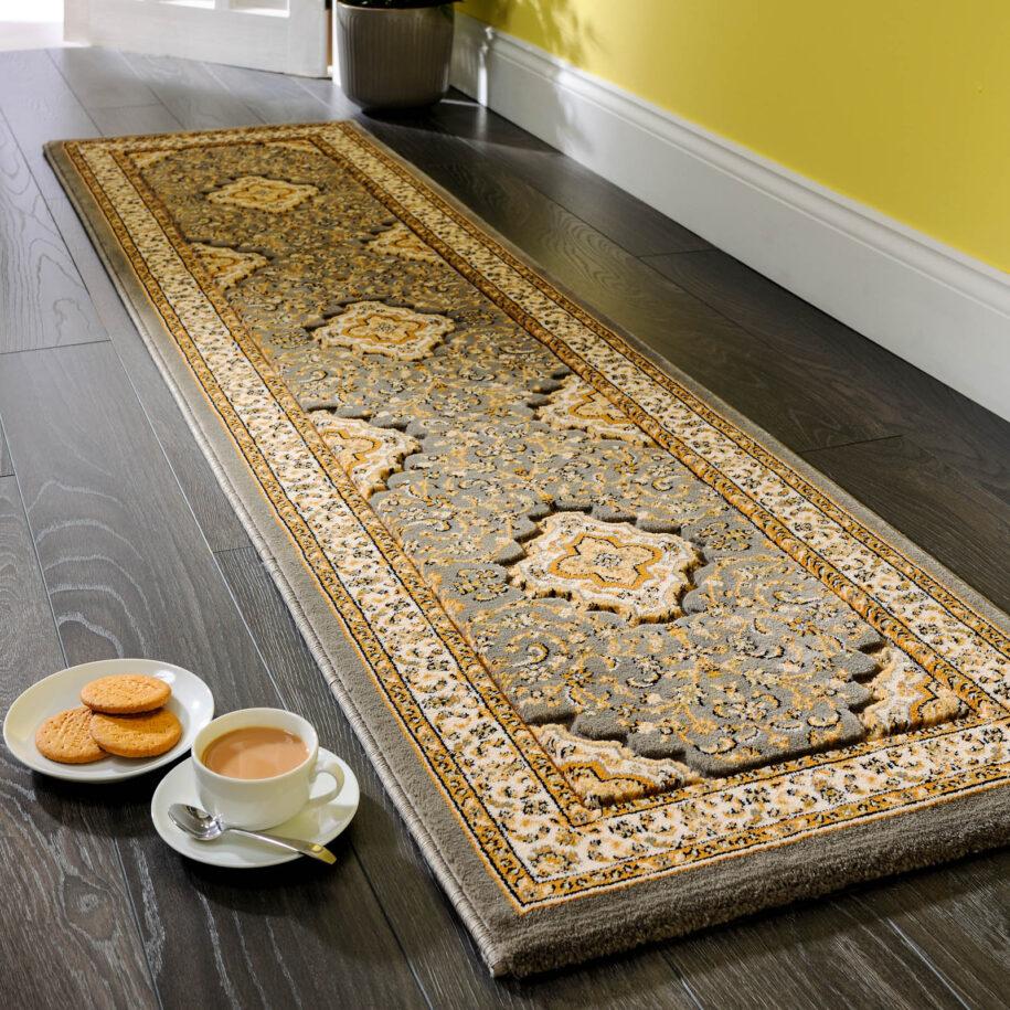 Такие изделия традиционно выпускаются классических цветов с добавлением орнаментального принта, современные модели бывают с рисунком, характерным для стиля хай-тек, модерн, гораздо реже дорожки имитируют домотканину, подходящую к стилю лофт. Разнообразная ширина позволяет подобрать размеры в соответствии со своей комнатой. Но лучше приобрести на 10-15 сантиметров уже.