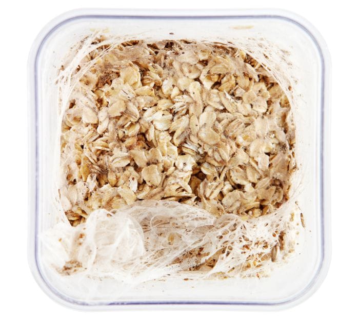 Если вы обнаружите гнездо в бакалее, тщательно проверьте каждую упаковку крупы и макарон. Но лучше всего – выкинуть абсолютно все запасы, чтобы точно извести насекомое. Даже одна-две личинки могут поспособствовать размножению моли в будущем.