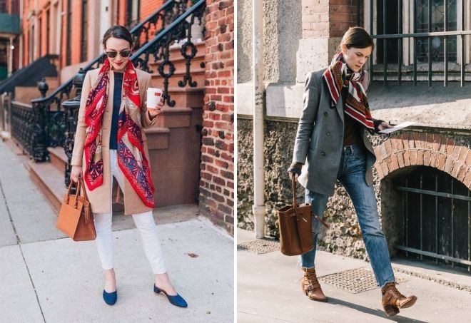 Палантины и женские платки сами по себе уникальные изделия, придающие повседневному, серому образу интересную палитру красок. Очень женственно смотрятся на женской шей палантины с различными принтами и рисунками. Городские модницы могут в одном и тоже наряде и с одним и тем шарфом, создать сразу несколько интересных образов, для этого они просто перевязывают его различными вариантами.