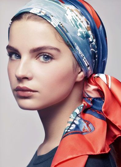 Если кожа лица светлая и с видимыми порами, пестрых расцветок платки помогут скрыть дефект. Платок стоит подбирать не более, чем с тремя цветами, чтобы не перегрузить образ колористикой.