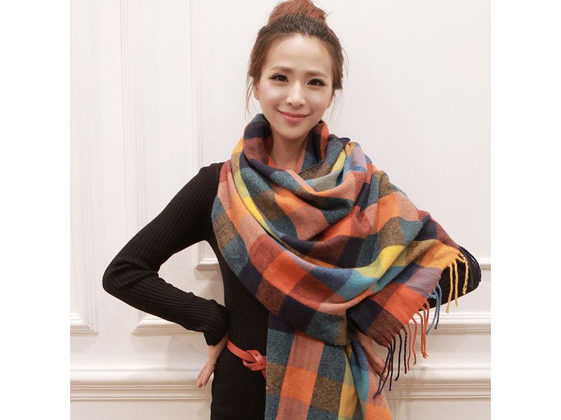 Для девушек, которые предпочитают свободный кэжуал стиль подойдет большой шарф с принтом в клетку.