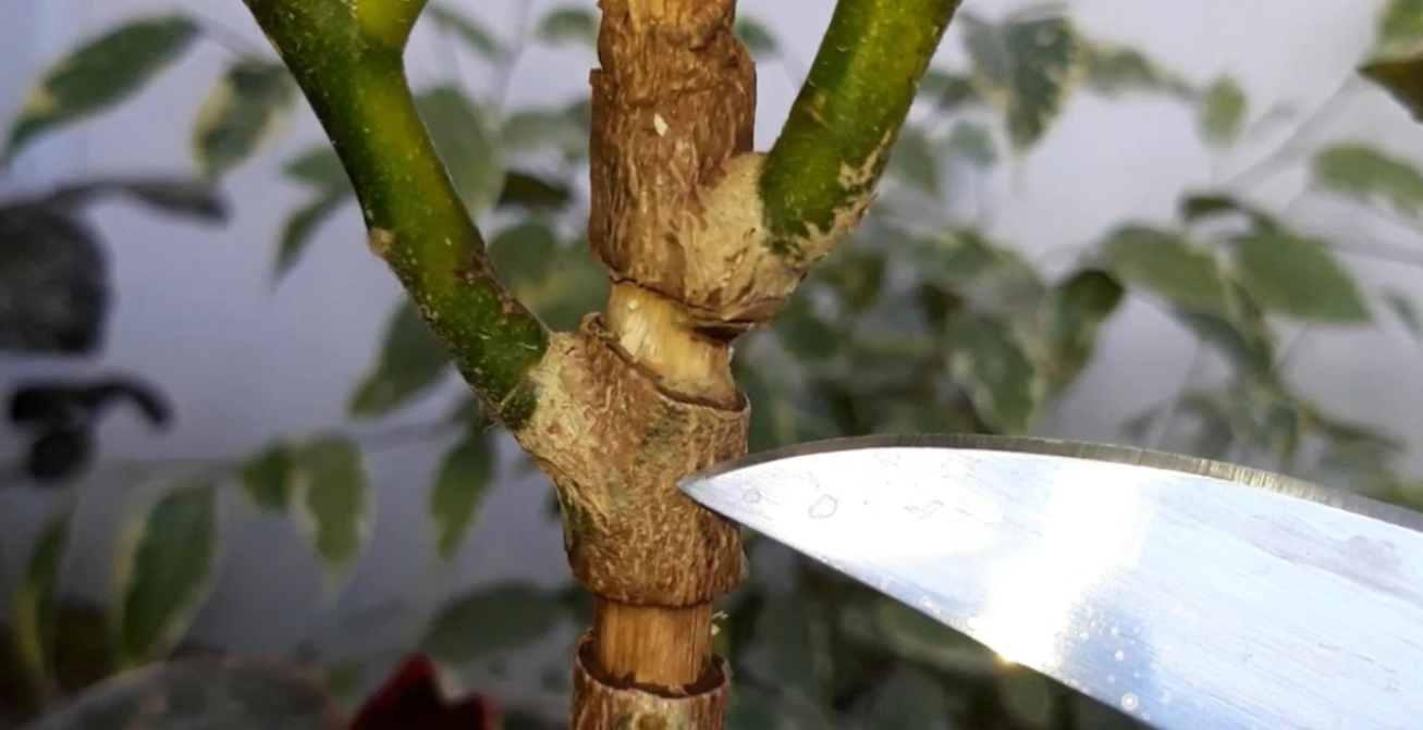Давайте разберёмся, как укоренить кротон в этом случае. Повреждённый участок следует очистить, удалив примерно 7 см полоску кожицы круговым срезом.