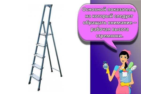 Основной показатель, на который следует обращать внимание – рабочая высота стремянки