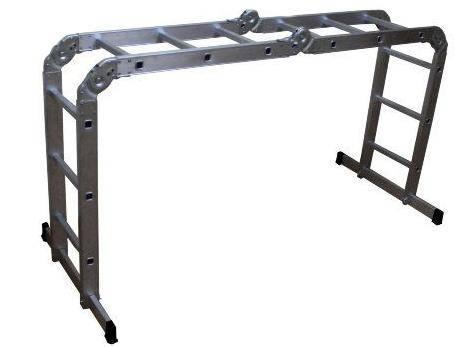 Благодаря правильно рассчитанному сечению профиля, стальным шарнирам, внутренней и внешней вальцовке перекладин качественная лестница-трансформер выдерживает повышенные нагрузки.