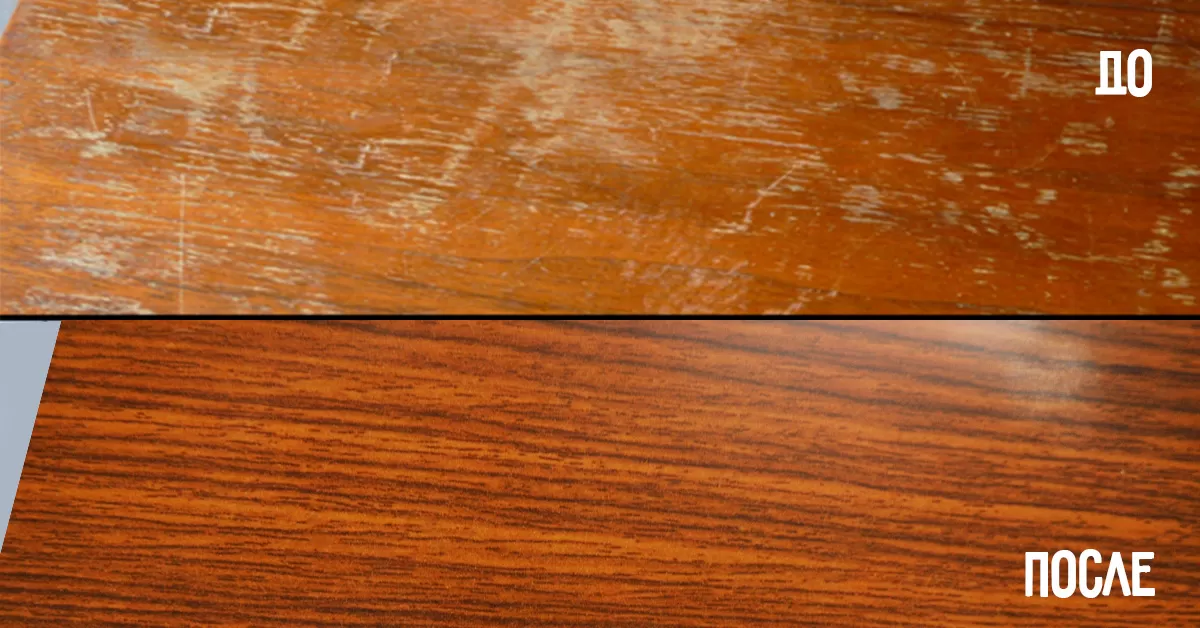 Выцветшую от истирания столешницу без сильных дефектов на поверхности (глубоких царапин, трещин) восстановить можно следующим образом: