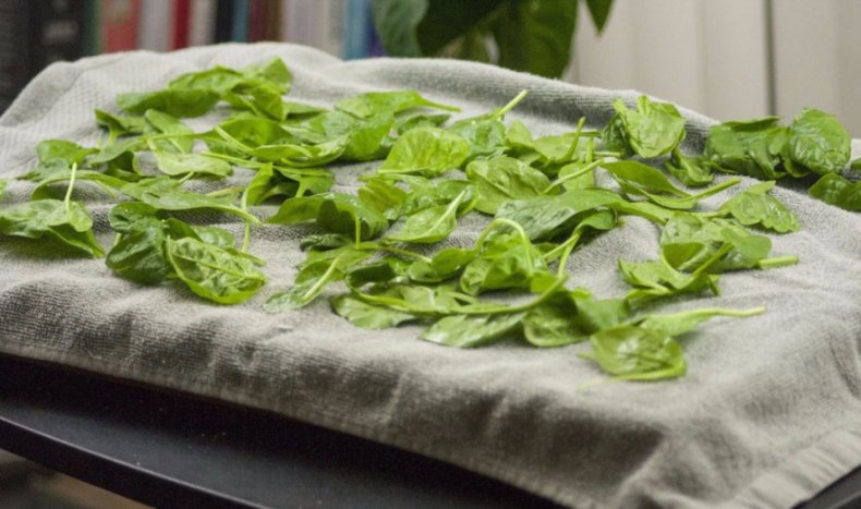 3. Затем зелень необходимо слегка обсушить – не засушить, а просто разложить на 10-15 минут на полотенце или бумаге, чтобы стекла и впиталась излишняя влага.
