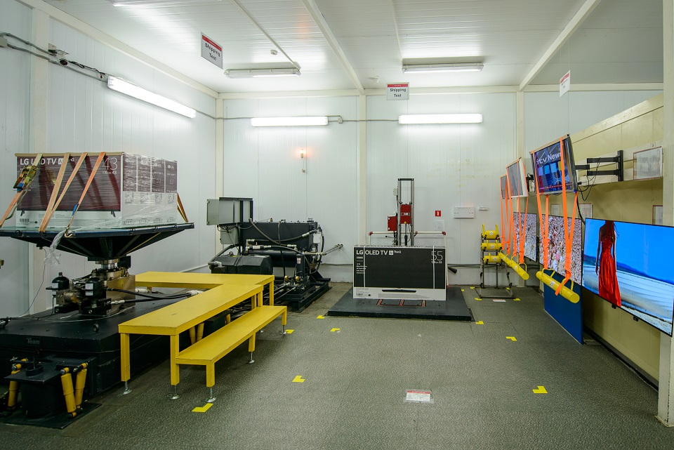 Специальный краш-тест имитирует нагрузки, возникающие при транспортировке: от сильной вибрации до падения. Многие дома сталкиваются с ситуацией, когда ребенок может повиснуть на телевизоре, закрепленном на кронштейне к стене, и уронить его. Для таких случаев на заводе LG проводится дополнительная проверка надёжности прикрепления телевизора к кронштейнам по стандарту VESA: во время теста на телевизор подвешивается груз массой 25 кг.